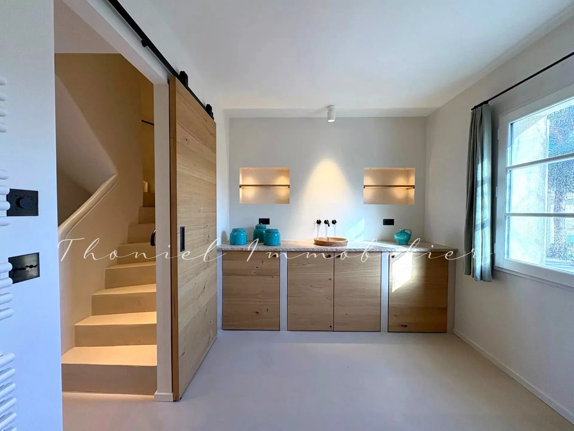 Les étages accueillent 3 chambres confortables, dont une avec balcon, deux dressings, ainsi qu’une élégante salle de douche avec WC.